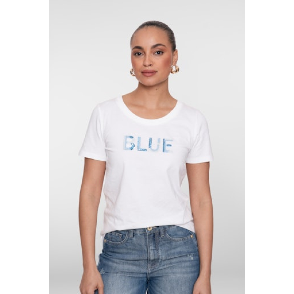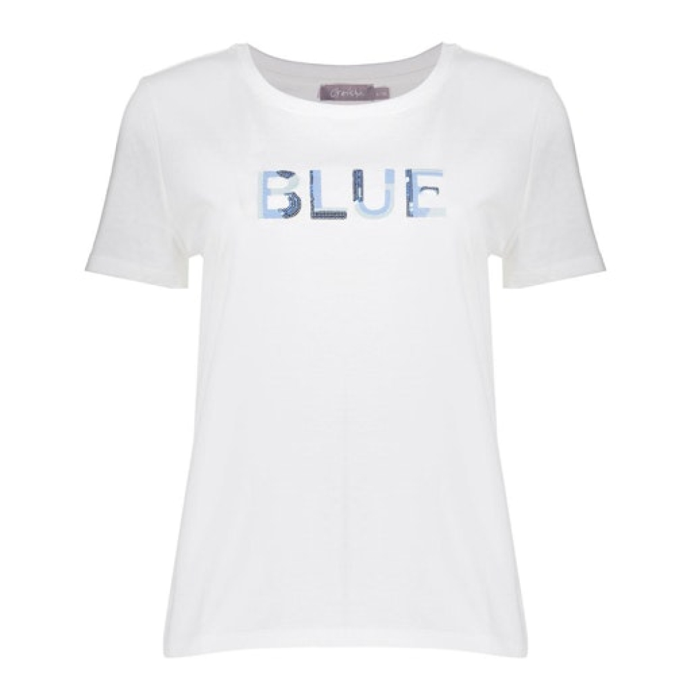 Geisha T-shirt blue sequences, off-white/blue