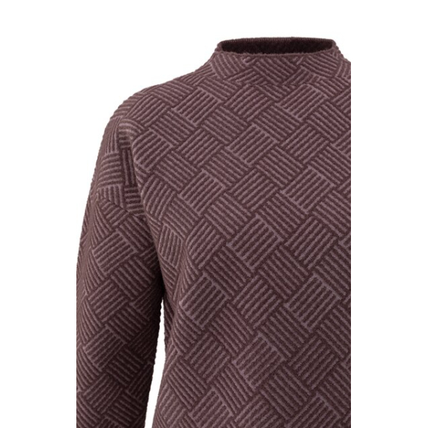 YAYA Jacquard sweater with collar, fudge purple dessin