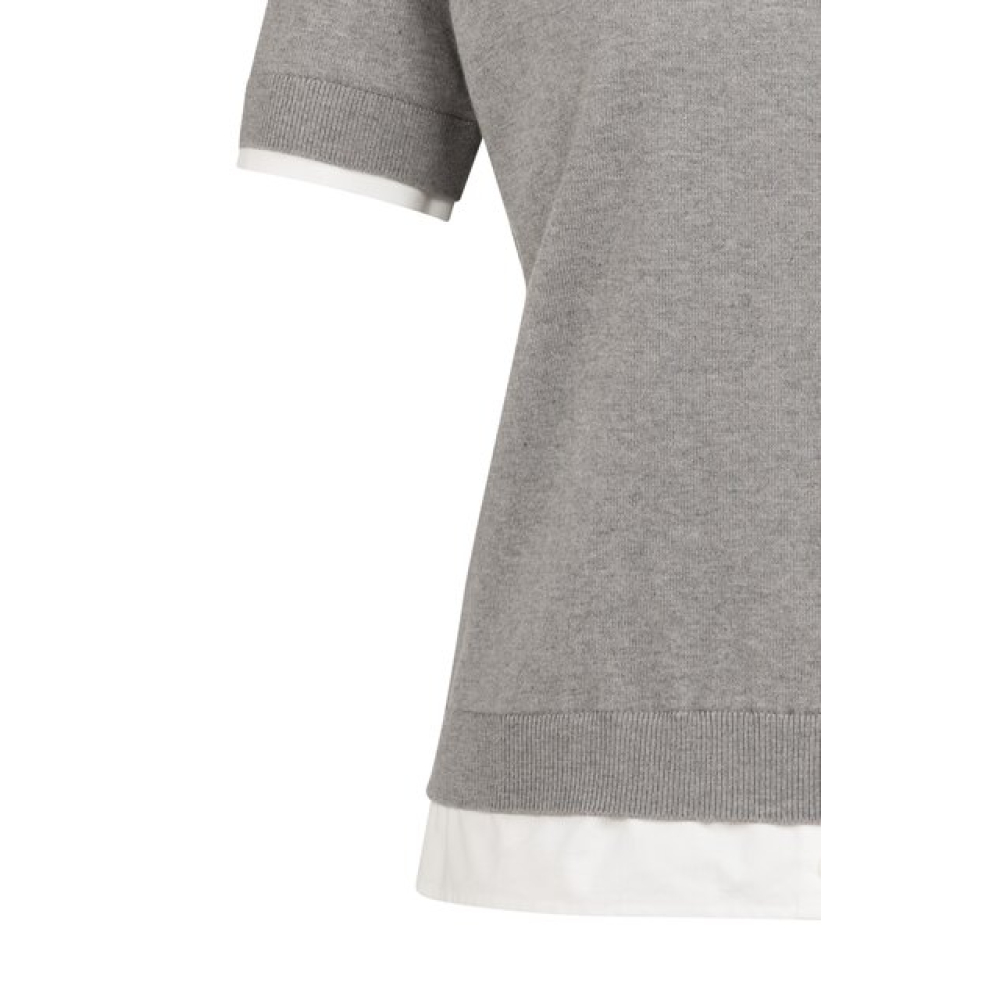 YAYA Gebreide top met dubbele zoom in het grijs.