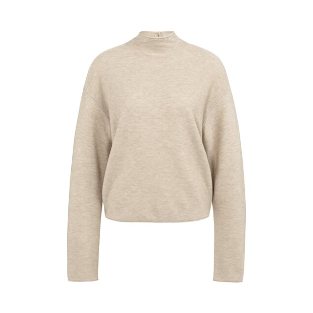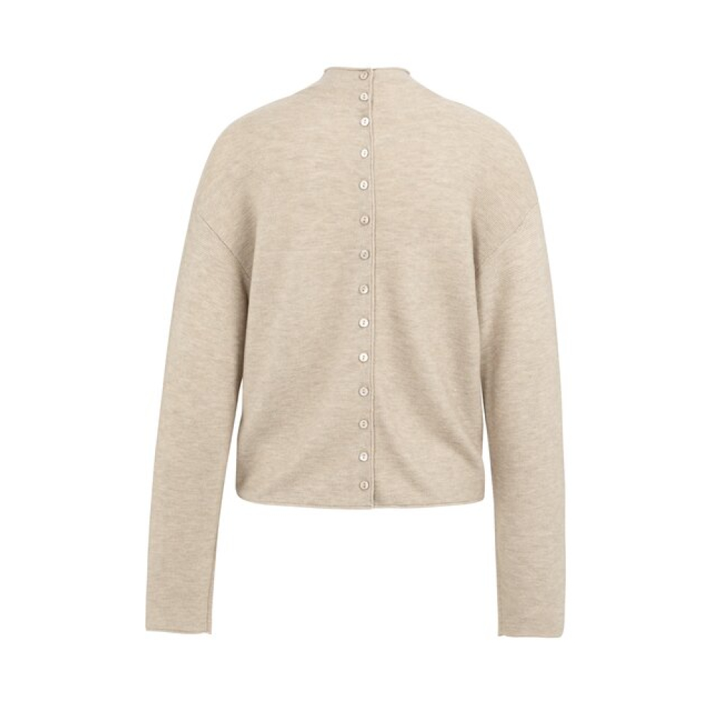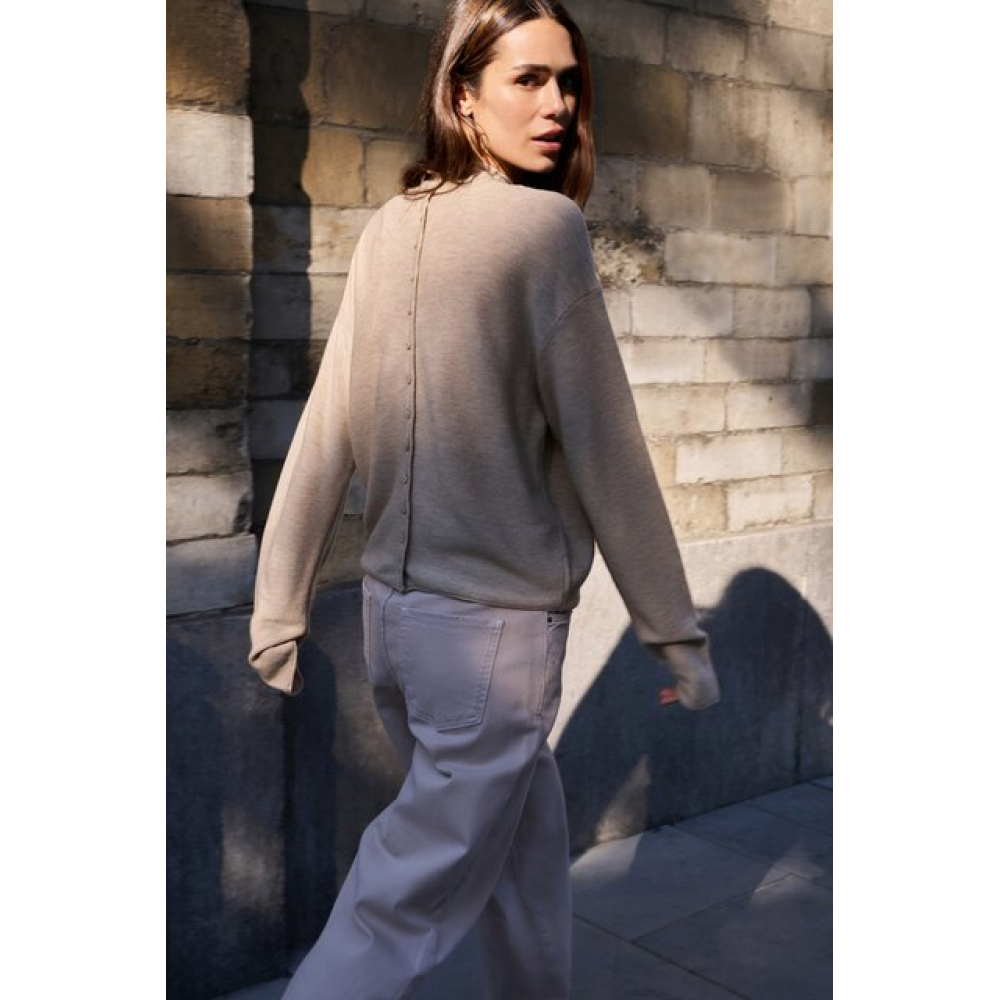 YAYA Sweater with buttoned back tan brown melange
