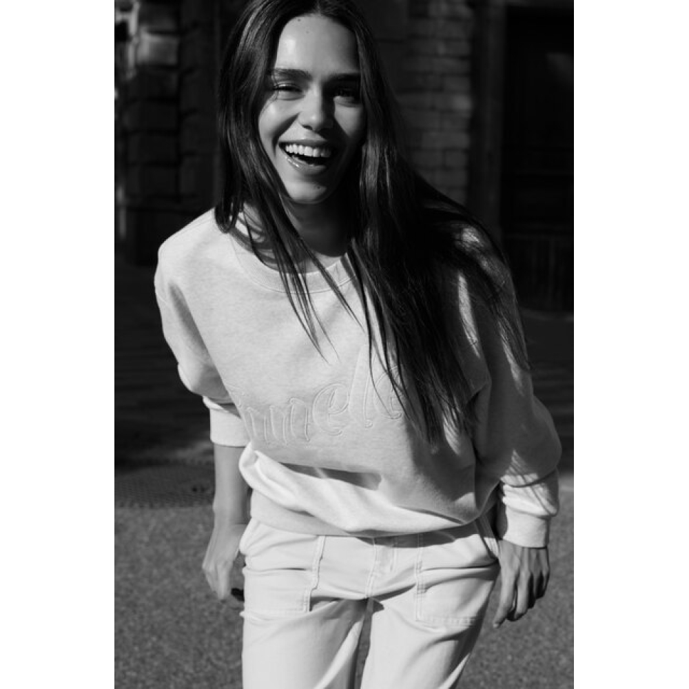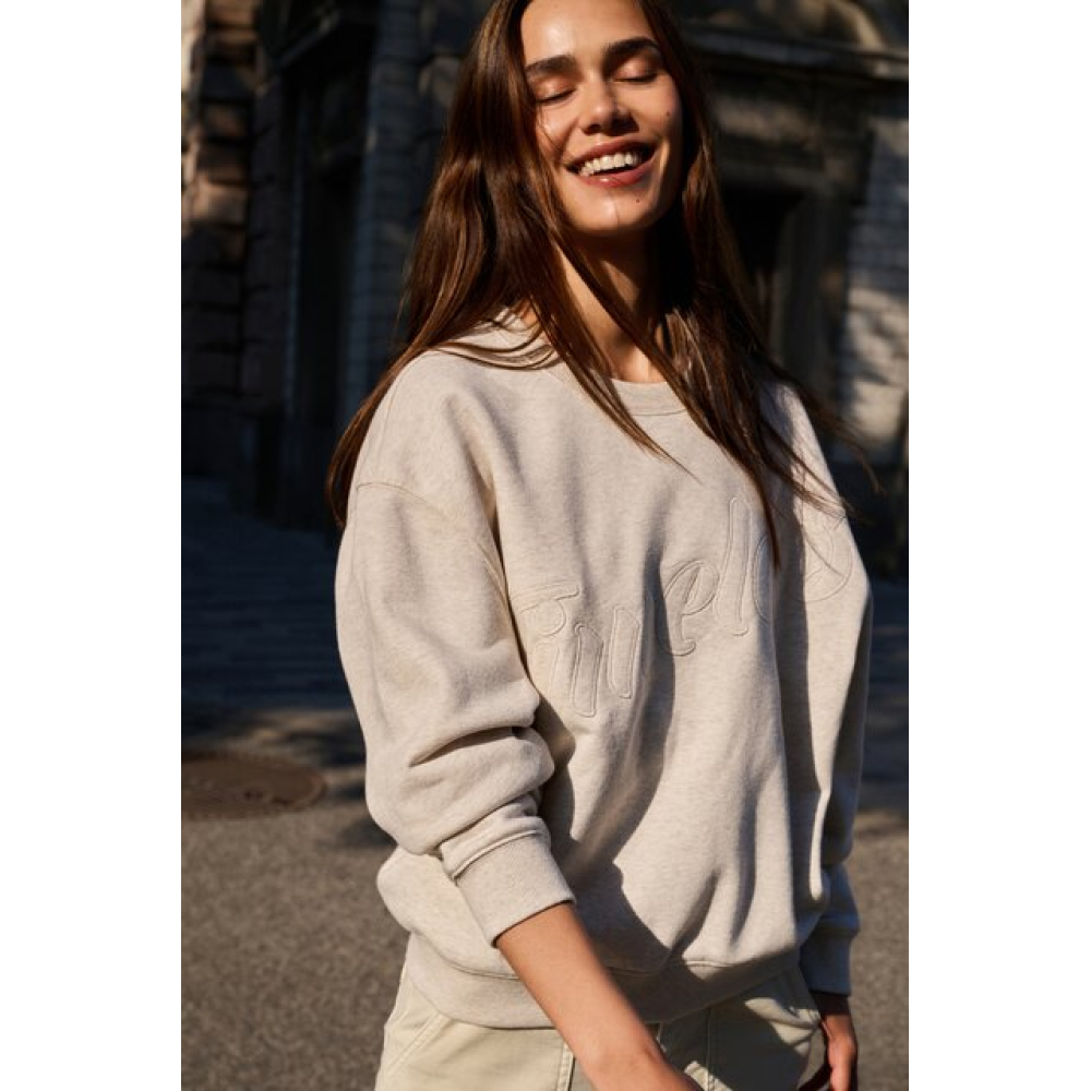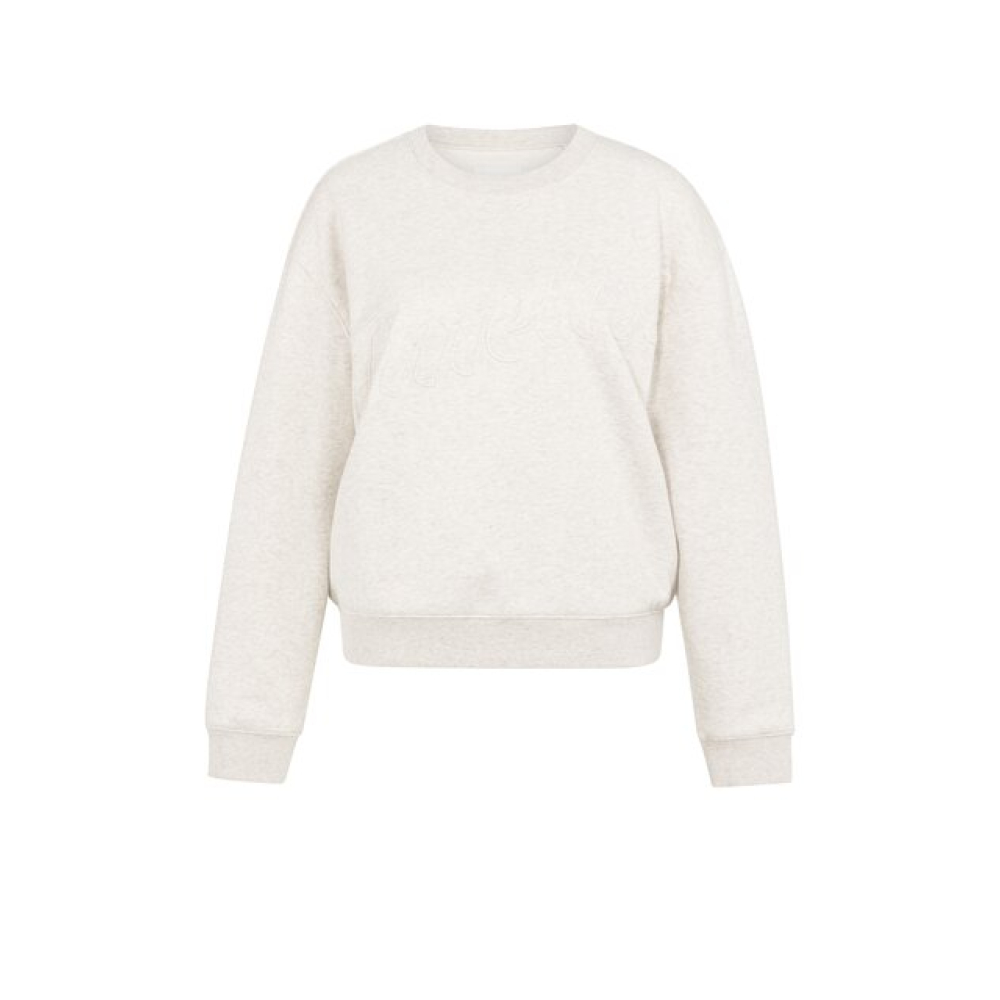 YAYA Sweater with stitched-on text heather grey melange